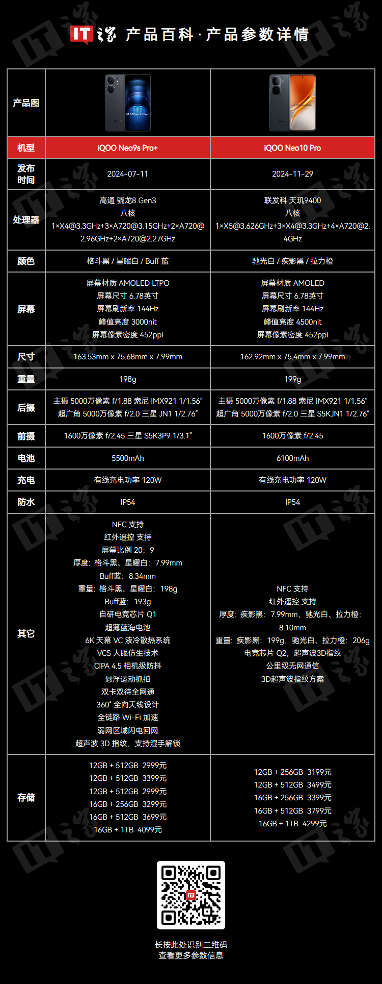 IT之家附 iQOO Neo9S Pro+ 和 iQOO Neo10 Pro 两款手机规格信息如下,以供对比: