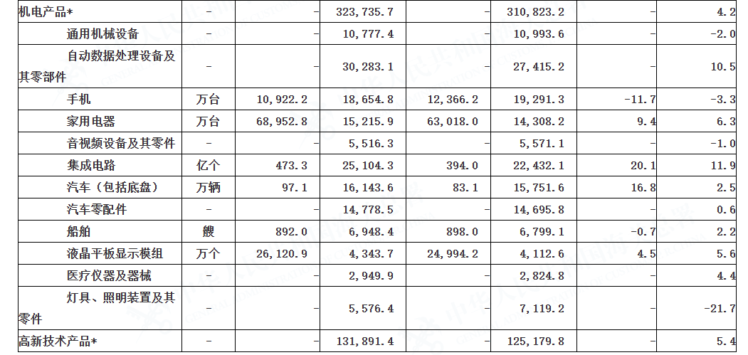 另外,自动数据处理设备及其零部件出口额达 302.83 亿美元(当前约 2193.39 亿元人民币),实现了 10.46 的同比增长。手机产品出口 186.55 亿美元(当前约 1351.18 亿元人民币),同比下降 3.3%;汽车(包括底盘)出口 161.44 亿美元(当前约 1169.3 亿元人民币),同比增长 2.5%。