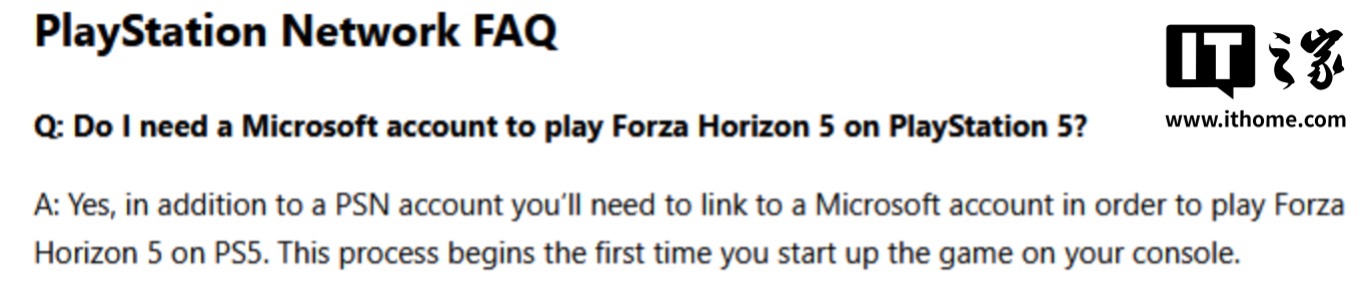 IT之家 3 月 9 日消息,微软旗下 Playground Games 工作室现已确认索尼 PS5 版《极限竞速:地平线 5》需要登陆微软账号才能游玩。