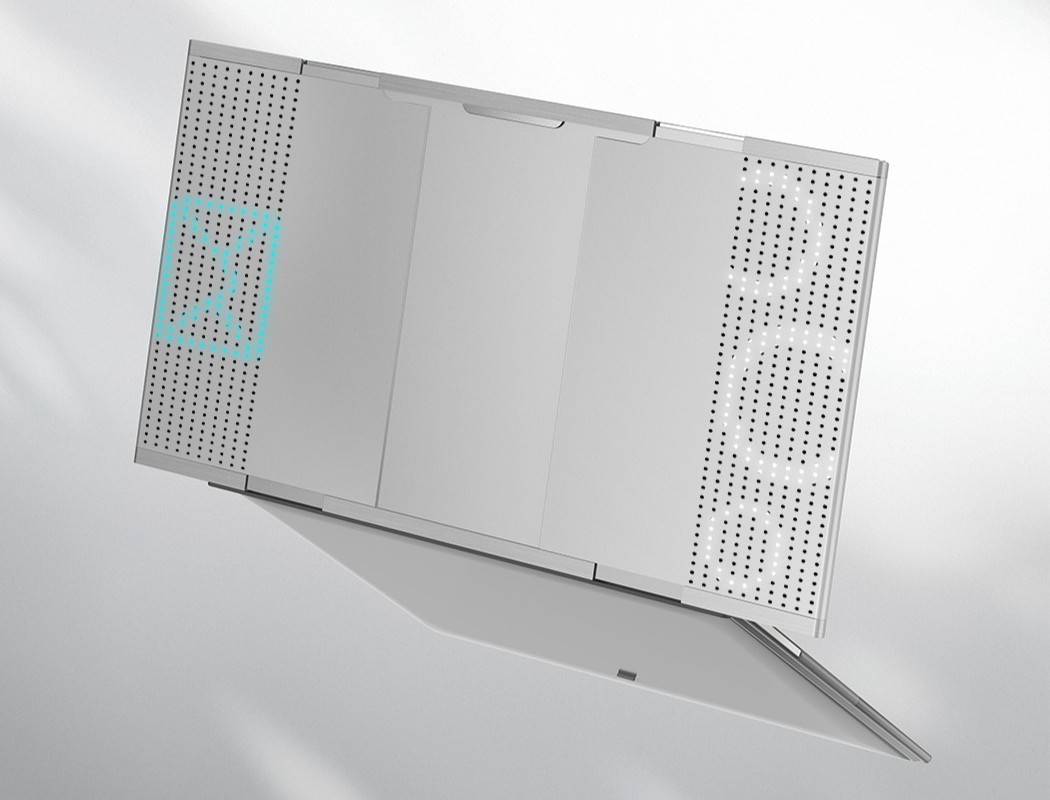 除横向扩展卷轴屏外,仁宝 Infinite 笔记本在 A 面区域还配备了可交互光显矩阵,能实现合盖通知显示、绘制解锁等功能。