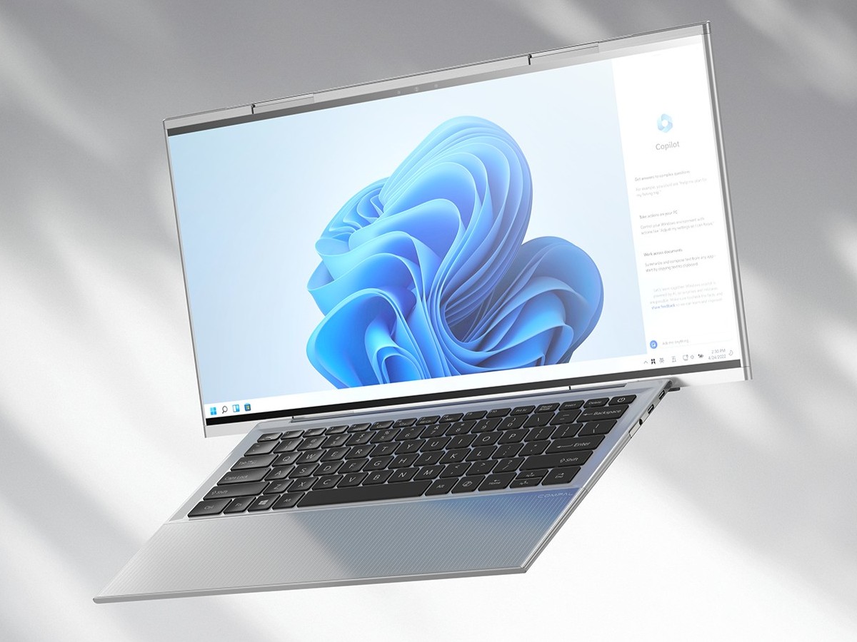 Infinite 笔记本常规状态下显示面板尺寸为 14 英寸,在需要超宽屏时左右两侧可向外延伸扩展,完全打开后屏幕尺寸增至 18 英寸(大致相当于显示比例从 16:10 变为 20:9),适合双栏浏览、宽表格处理等生产力应用场景。