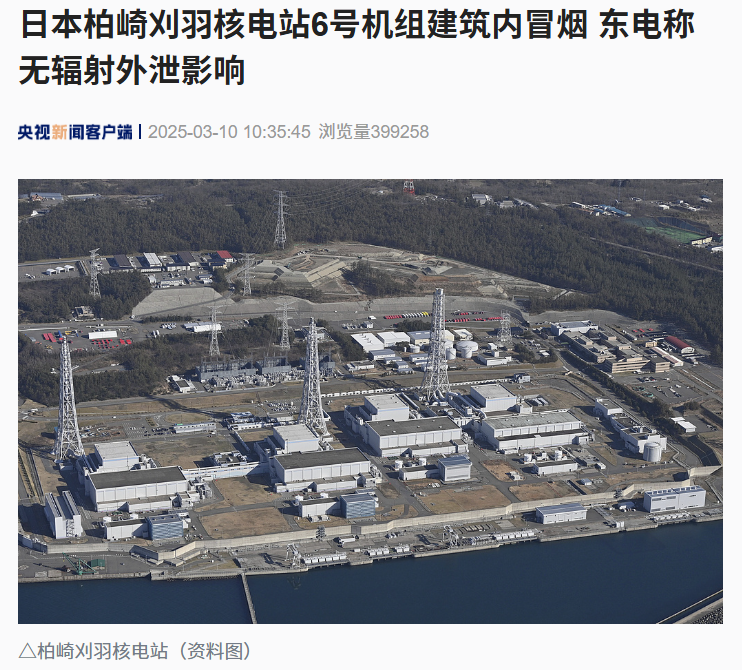 IT之家 3 月 10 日消息,据央视新闻报道,日本东京电力公司称当天上午 10 时左右,新潟县柏崎刈羽核电站 6 号机组建筑内的紧急柴油发电机控制室发生冒烟情况,公司随即拨打火警。