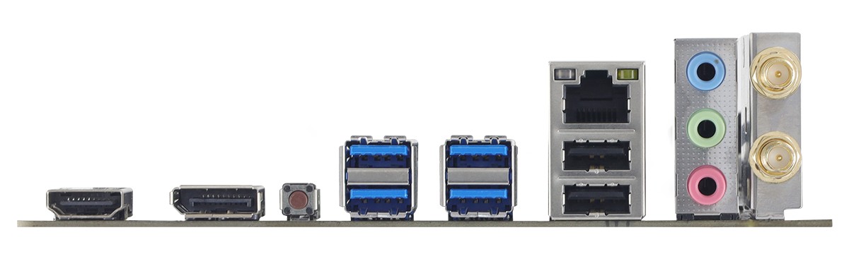 后置接口:1× HDMI 2.1、1× DP 1.2、4× USB-A 5Gbps、2× USB-A 480Mbps、1× 2.5GbE RJ45、3× 音频插孔。