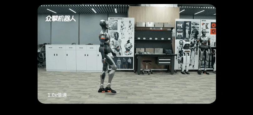 众擎在 2024 年 10 月推出首款全尺寸通用人形机器人 SE01,首次实现了自然拟人步态,相比于动作僵硬、能耗高、适应性差的机械步态,拟人步态表现出更高的灵活性和效率,实现身体各部位的协调运动。