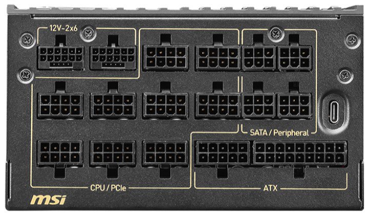 微星在该电源上采用了全数字电路架构,以 MCU 控制 PFC、LLC 谐振和保护功能,这使得电源能动态调整输出,更稳定的同时也更高效。该电源还可通过 USB-C 接口连接至主机,实现即时监控、风扇控制、灯效控制。