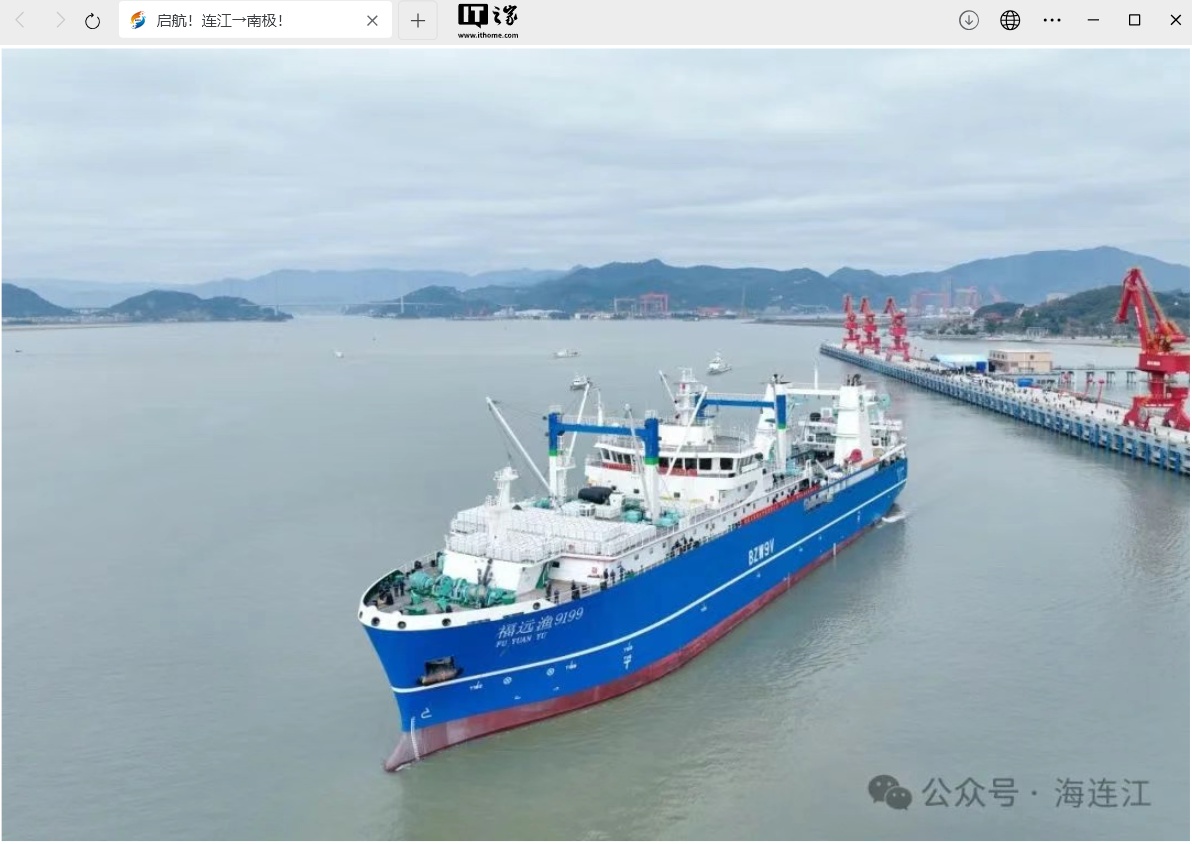 IT之家 3 月 11 日消息,据连江县网络宣传管理中心消息,全国最大南极磷虾捕捞加工船“福远渔 9199 号”昨日上午在连江粗芦岛启航,这也是福州(连江)国家远洋渔业基地核心区母港码头 3-6 号泊位正式对外开放后的首航。
