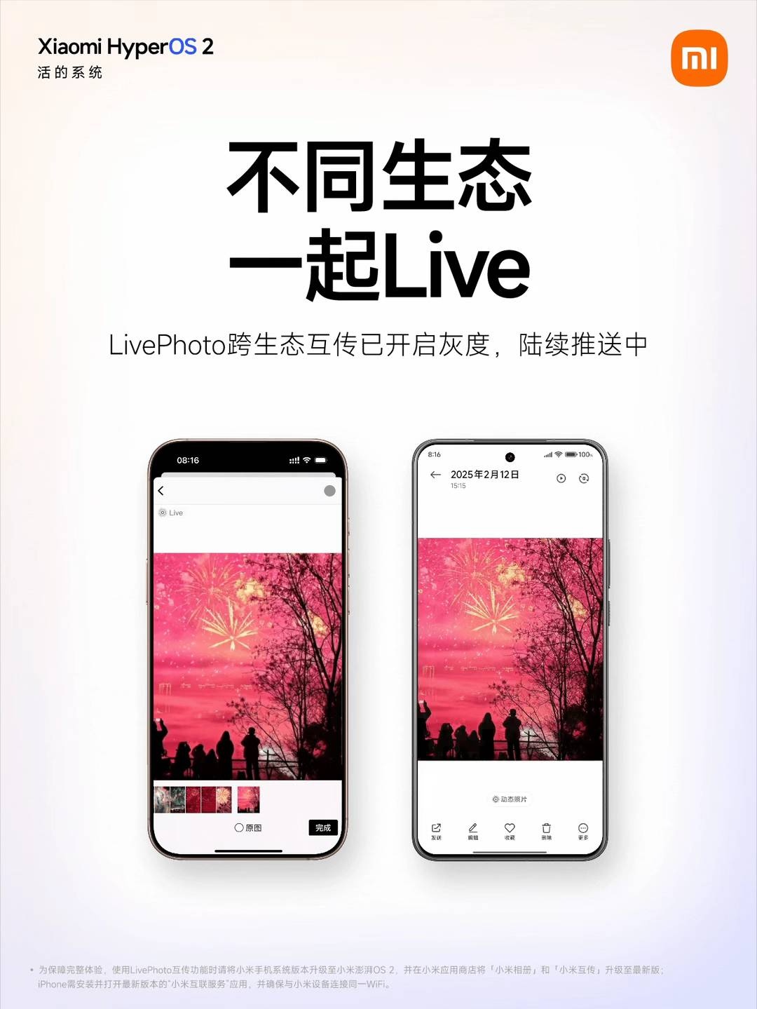 IT之家 3 月 11 日消息,小米公司今日发文宣布,澎湃 HyperOS 2 系统已支持跨生态互传 LivePhoto,该功能已开启灰度,陆续推送中。