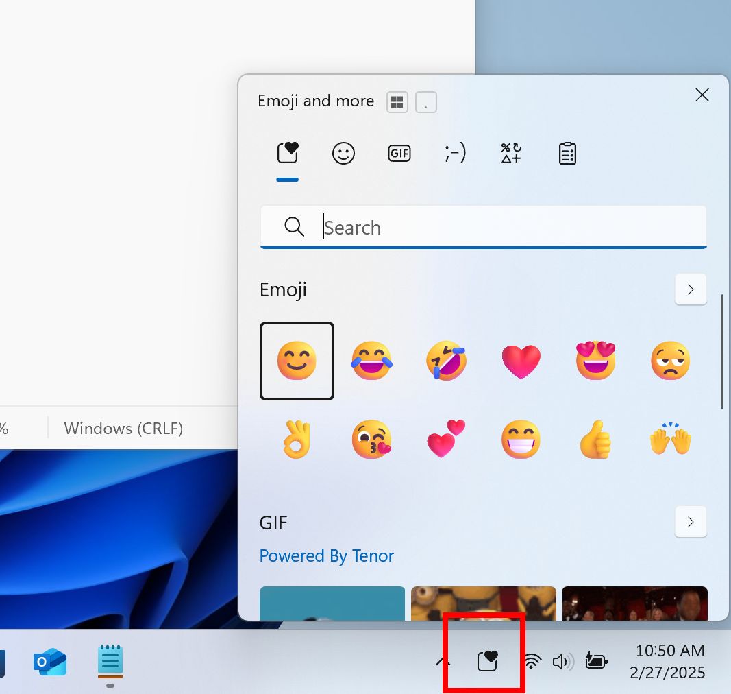 微软在任务栏上新增了一个系统托盘图标,方便用户快速访问表情符号、GIF、颜文字等内容。用户还可以通过右键点击图标进入任务栏设置页面进行自定义。