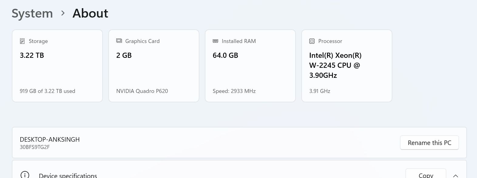 在“设置 > 系统 > 关于”页面中,新增了“Top Cards”功能,帮助用户快速查看 PC 的关键规格,如处理器、内存、存储和 GPU。这一功能旨在简化硬件升级决策。