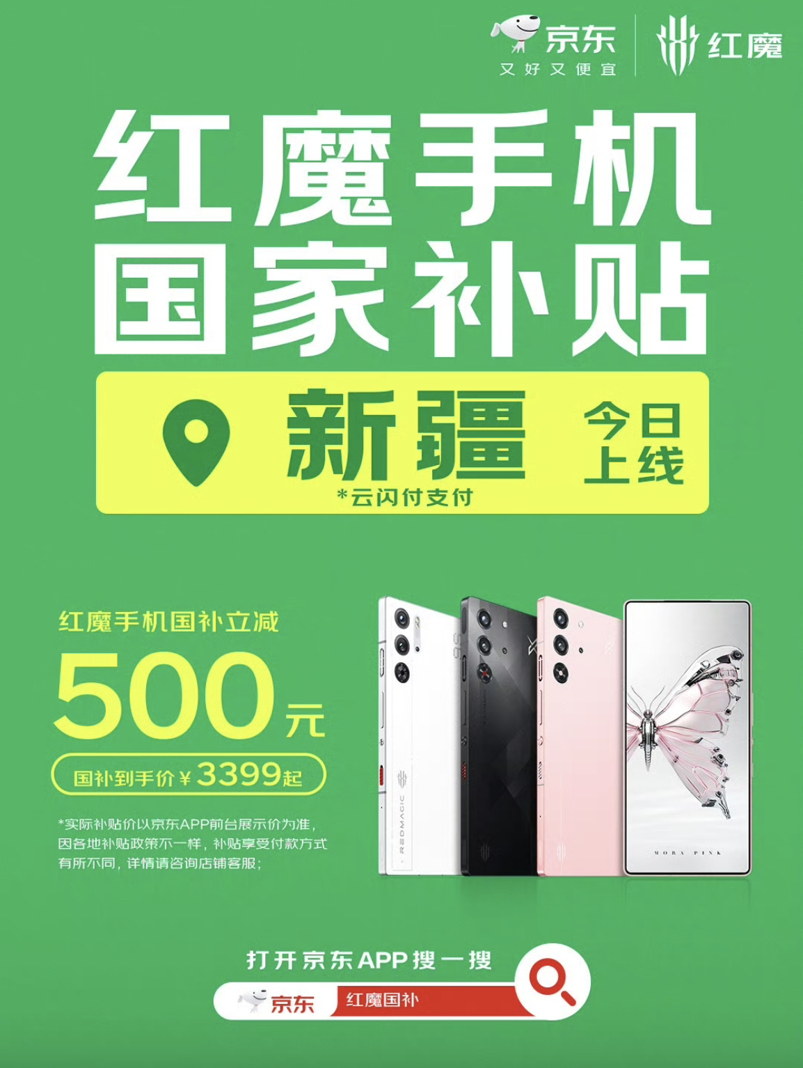 IT之家 3 月 11 日消息,红魔游戏手机官方微博宣布今日旗下红魔 9S Pro / 10 Pro 系列手机均已上线新疆地区国家补贴,至高立减 500 元,其中红魔 9S Pro 手机到手价 3399 元起,红魔 10 Pro 手机到手价 4499 元起。