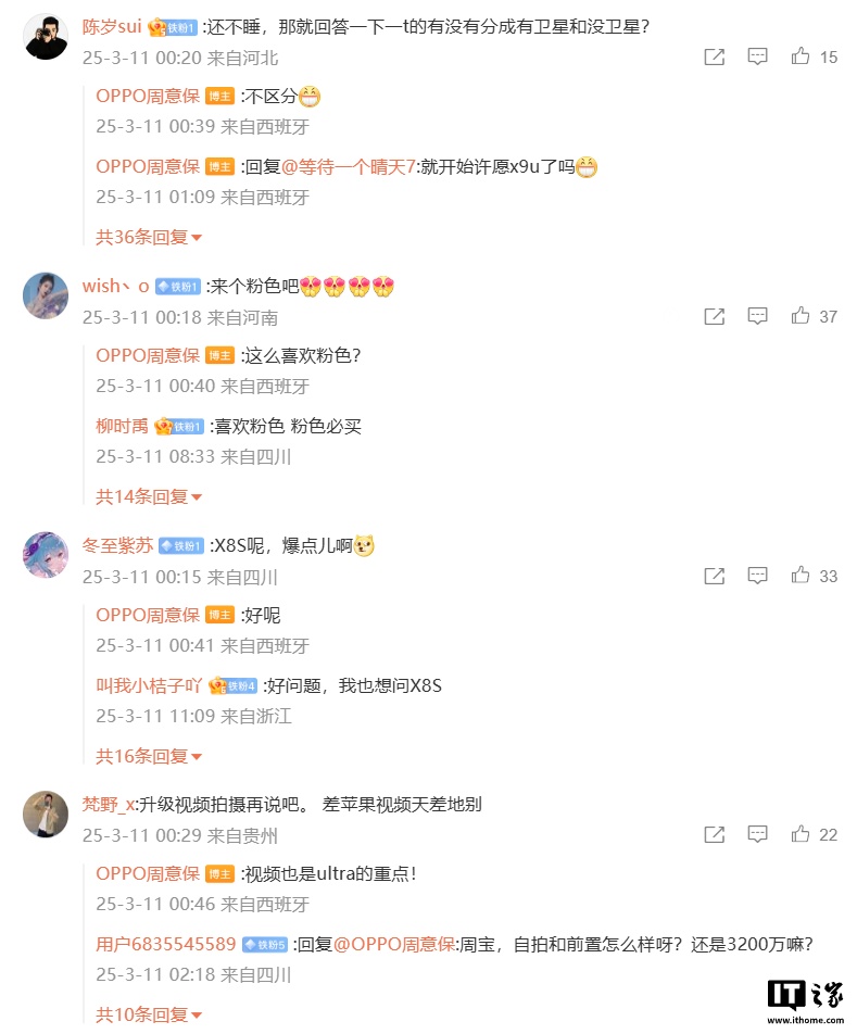 周意保还在另外一条微博评论区中回复了部分网友的问题:针对 1TB 规格的版本是否会做区分卫星通信版和无卫星通信版,他回复“不区分”;针对新机视频拍摄能力是否有升级,他表示“视频也是 Ultra 的重点”。