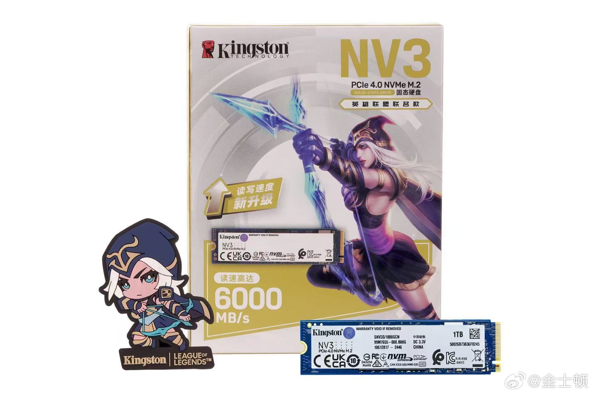 IT之家 3 月 12 日消息,金士顿今日宣布推出英雄联盟 X 金士顿 NV3 PCIe 4.0 NVMe M.2 限定联名款固态硬盘,附赠寒冰射手艾希精美冰箱贴。