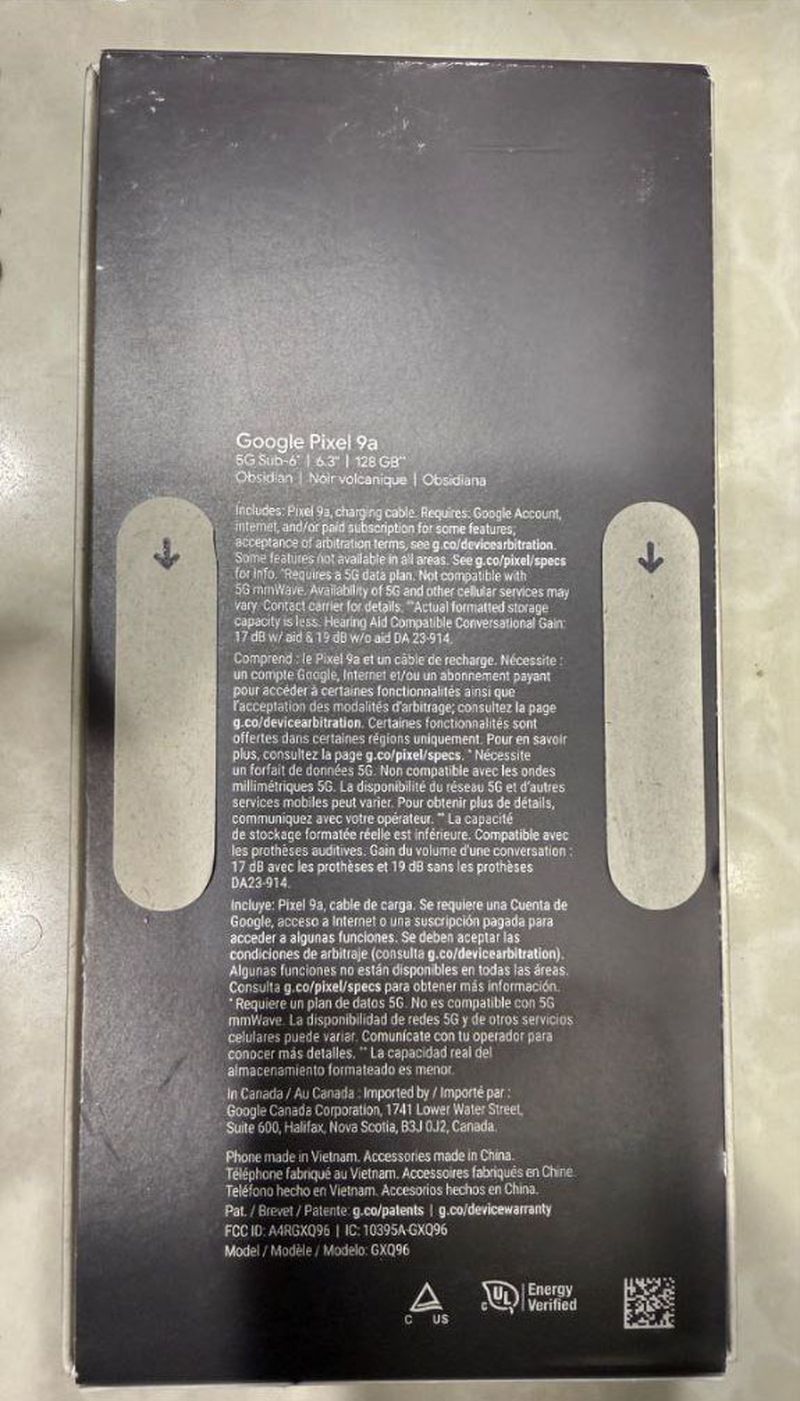 IT之家查询公开资料,还发现网络上已流出 Pixel 9a 的包装盒: