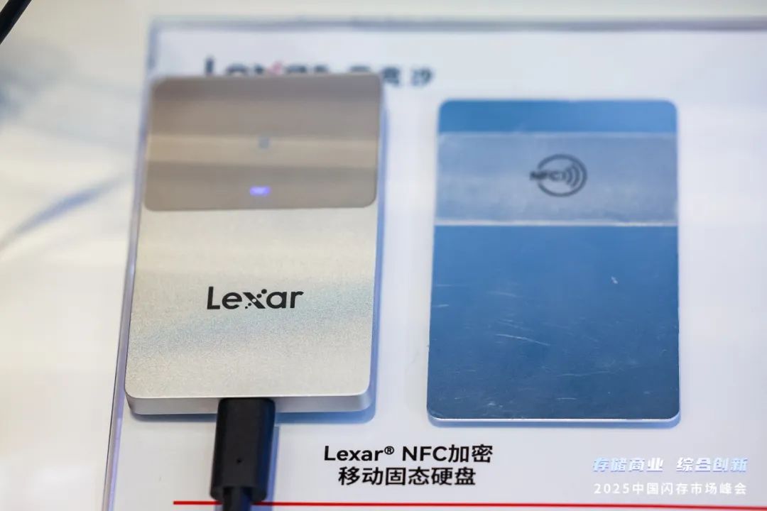闪存峰会 2025 现场,雷克沙展示了旗下首款 NFC 加密移动固态硬盘。