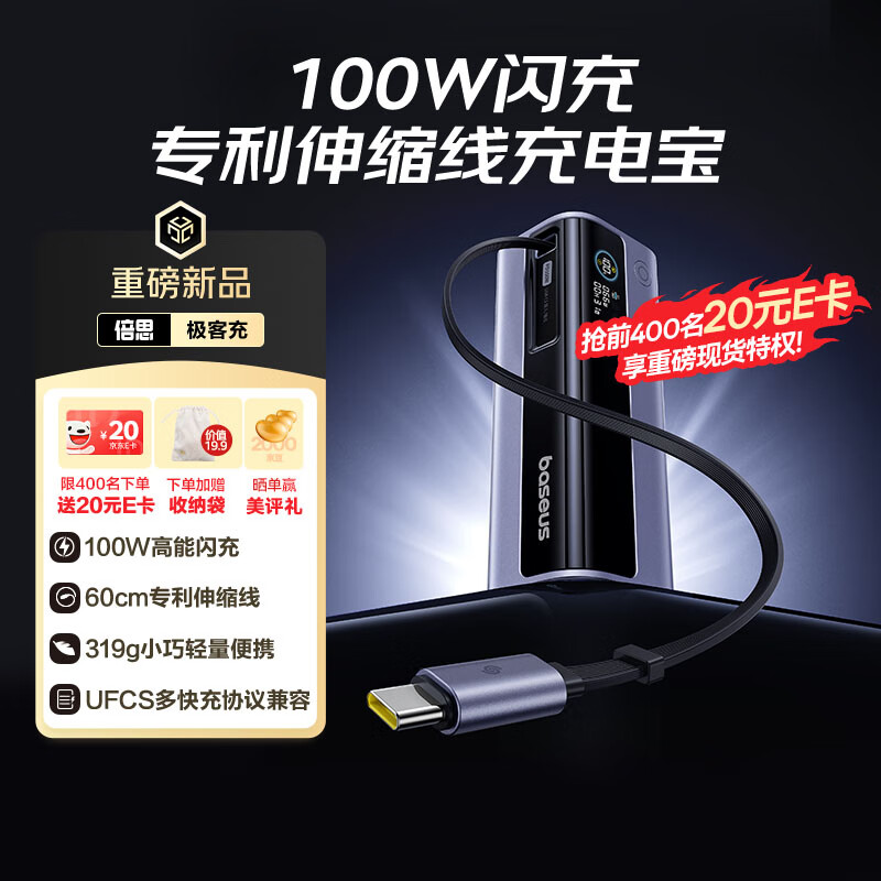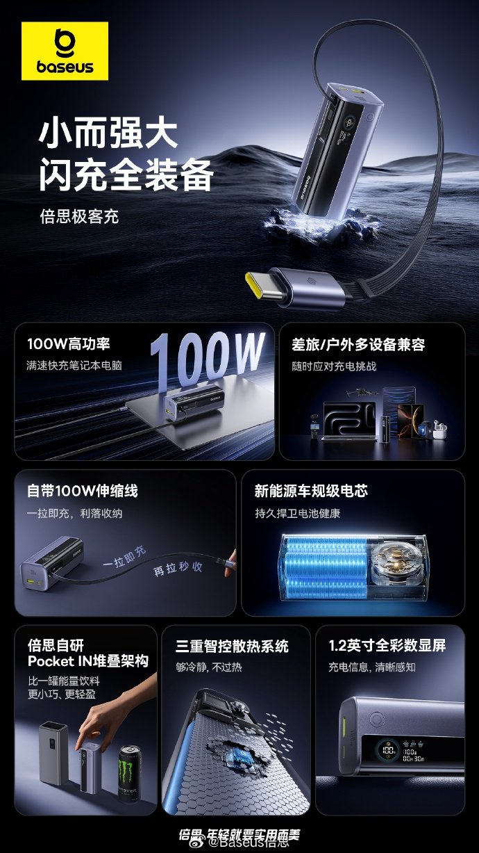 IT之家 3 月 12 日消息,倍思极客充 GR11 充电宝近日迎来上市,这款新品支持 100W 功率,配备自带伸缩线,售价 199 元。