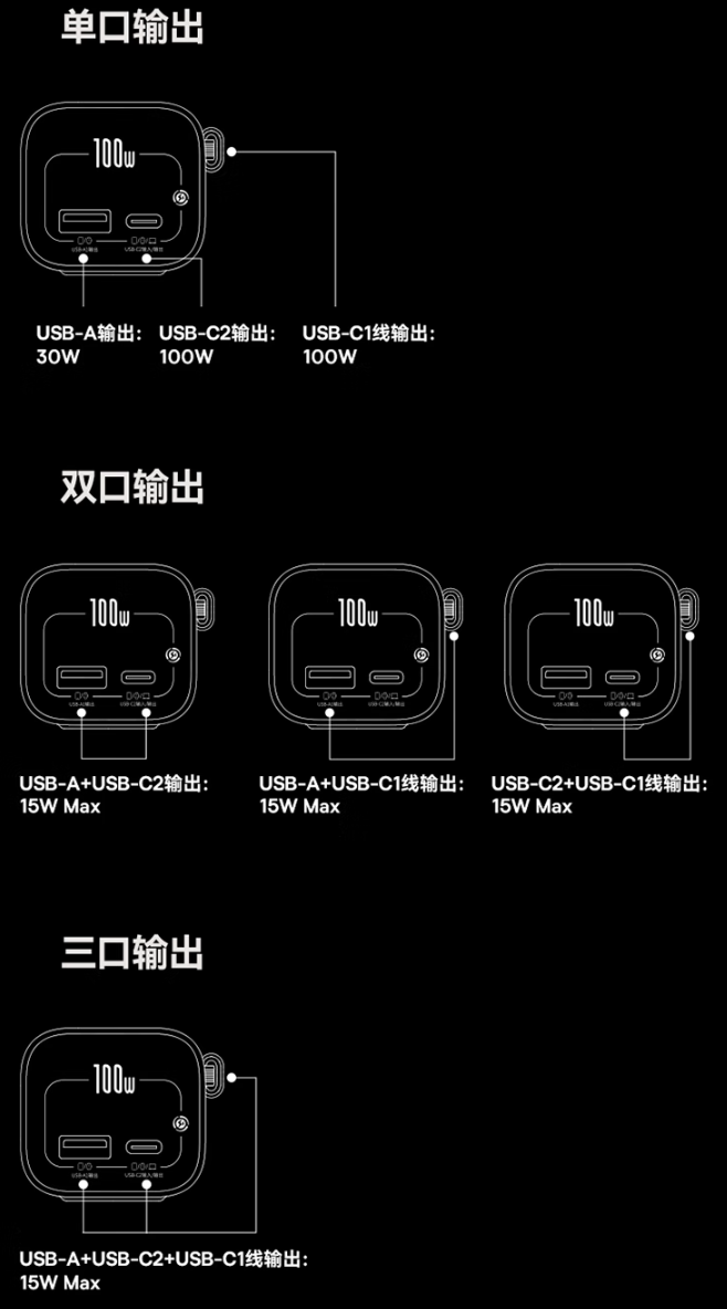 商品页面显示,该产品采用专利伸缩线设计,通过 30000 + 次拉伸测试,刷新行业标准;双 C 口输出均能达到 100W,A 口输出 30W,一站式解决笔记本电脑、手机、无人机、游戏机等多设备充电需求,支持 UFCS、PPS、PD3.0、QC3.0、UFC 等快充协议。