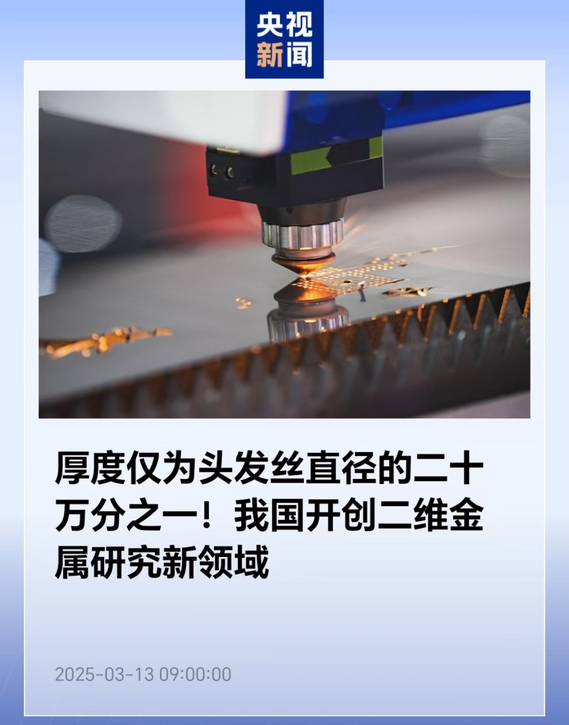IT之家 3 月 13 日消息,据央视新闻报道,中国科学院物理研究所近期成功研制出厚度仅为头发丝直径的二十万分之一的单原子层金属,这是国际上首次实现大面积二维金属材料的制备,开创了二维金属研究新领域。