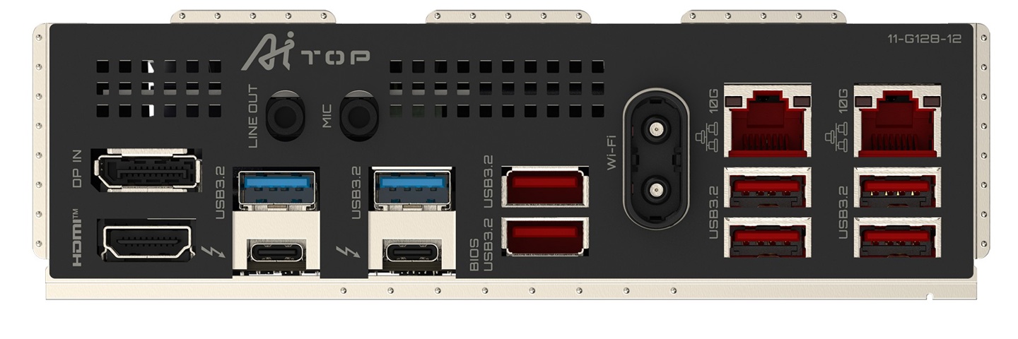 后置接口:1× HDMI、1× DP-in、2× 雷电 5、2× USB-A 5Gbps、2× 音频插孔、6× USB-A 10Gbps、2× 10GbE RJ45;