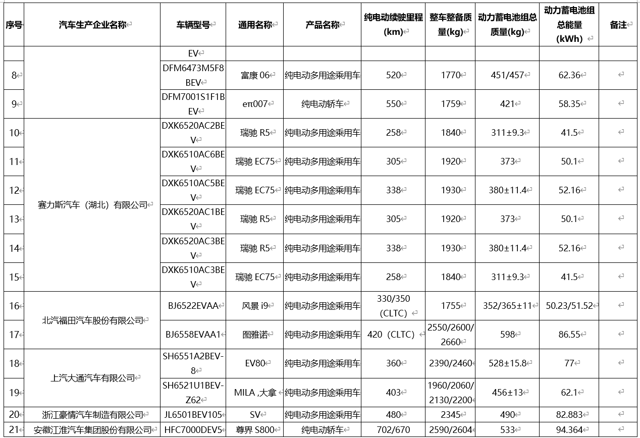 IT之家 3 月 13 日消息,工信部今日发布《减免车辆购置税的新能源汽车车型目录》(第十五批),其中包括小米 YU7、尊界 S800、问界 M9EV 等车型。