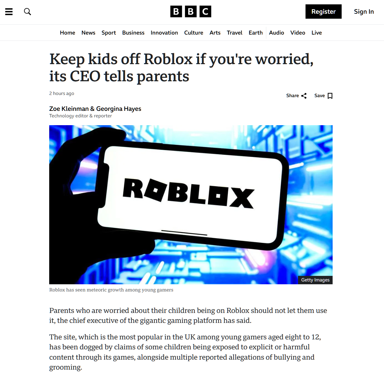 在接受 BBC 新闻专访时,当被问及给那些不希望孩子使用 Roblox 的家长有什么建议时,巴祖基回答道:“我想说的是,如果你不放心,就不要让孩子用 Roblox。这可能听起来不太合常理,但我始终相信家长能做出自己的选择。”