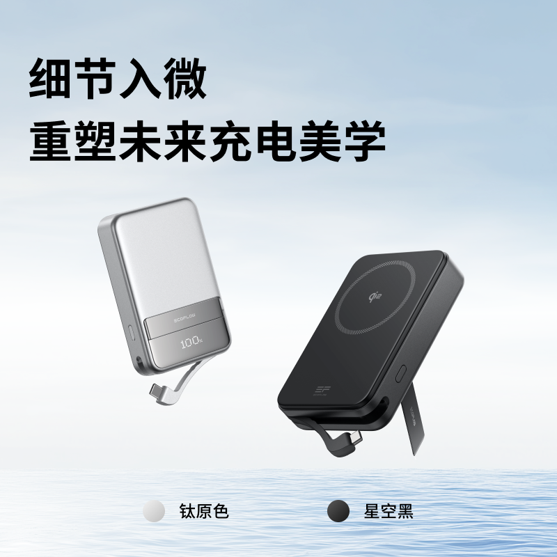 在输入、输出功率方面,该充电宝的有线输入、输出均为 65 瓦,自带 USB-C 线。同时支持 Qi2 15 瓦无线磁吸充电,苹果安卓均可使用。