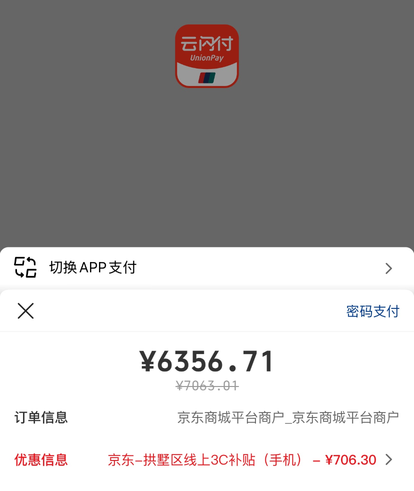 本次跳转云闪付后显示国补金额,部分地区可能不支持本次补贴: