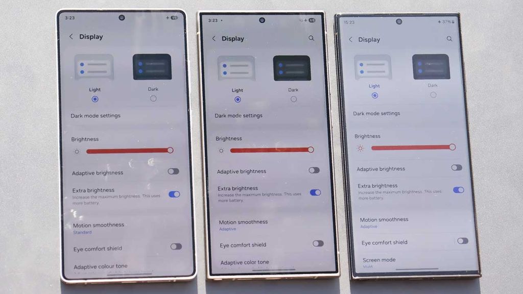 Galaxy S23 Ultra:传统玻璃面板,强光下反光严重,色彩失真明显