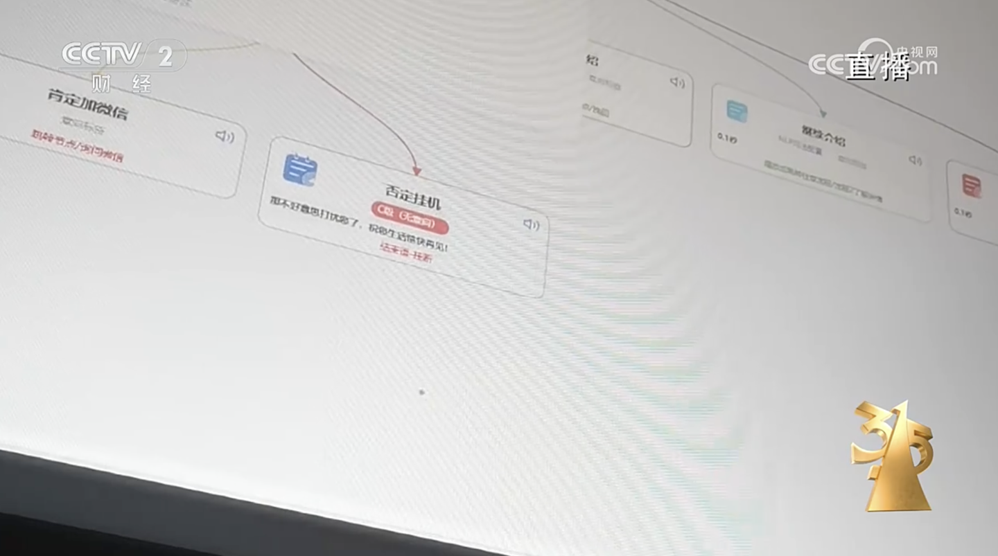 在一家名为智优擎的网络科技有限公司里,负责人田经理打开了一套给客户测试运行中的系统后台,一家口腔医院的智能机器人的话术呈现在电脑屏幕上,每句话都设有相应的触发关键词,一旦消费者说了相关的语句,智能机器人会转到对应的回复内容。他表示,“AI 种类分得很广,这种是纯外呼 AI,AI 在前期,相当于无限接近一个真正的人帮你呼叫这个电话。”