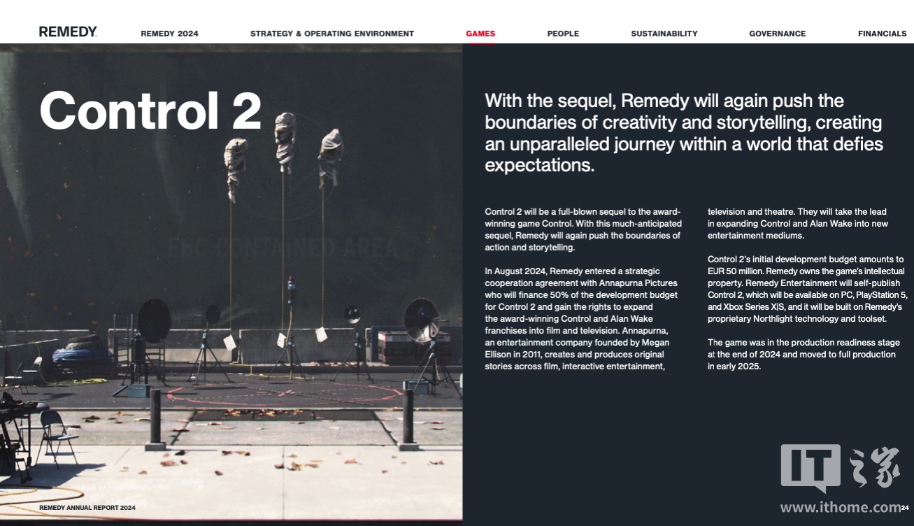 在年报中,Remedy Entertainment 确认了《控制 2》已经全面进入开发工作阶段,同时该公司还确认了预计开发周期将在 15-26 个月之间,团队规模可能由 75 人扩充至 200 人。