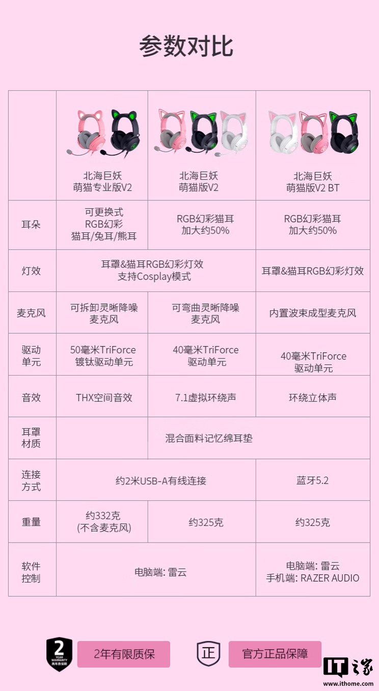 IT之家 3 月 16 日消息,雷蛇在 3 月 7 日为旗下北海巨妖萌猫版 V2 有线和 V2 BT 蓝牙头戴式耳机新增黑白双色配色,目前相应耳机国行已上架京东,定价均为 799 元。