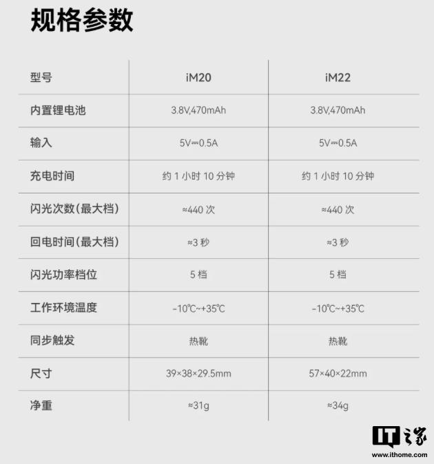 IT之家附闪光灯参数如下: