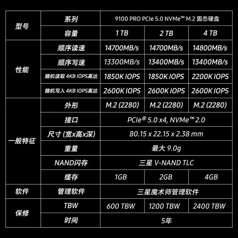 IT之家 3 月 18 日消息,三星发烧级的 PCIe 5.0 固态硬盘产品 9100 PRO 国行今日正式发售,IT之家汇总定价如下: