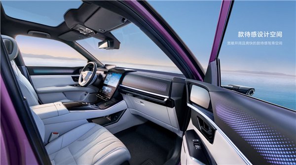 外观方面,该车采用宽体低趴运动造型,车内配备高阻尼高减震人体工学座椅、智能加热系统,车顶还配备了 1.85㎡的智能调光全景天幕。