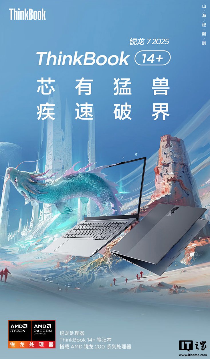 IT之家 3 月 18 日消息,联想现已为其 2025 款 ThinkBook14+/16+ 笔记本新增 AMD R7 H 260 版本,相应版本笔记本均采用 32GB RAM 及 1TB SSD,其中 ThinkBook14+ 定价 5999 元(国补后 4800 元)、ThinkBook16+ 定价 6499 元(国补后 5200 元),均将于 3 月 25 日首销。
