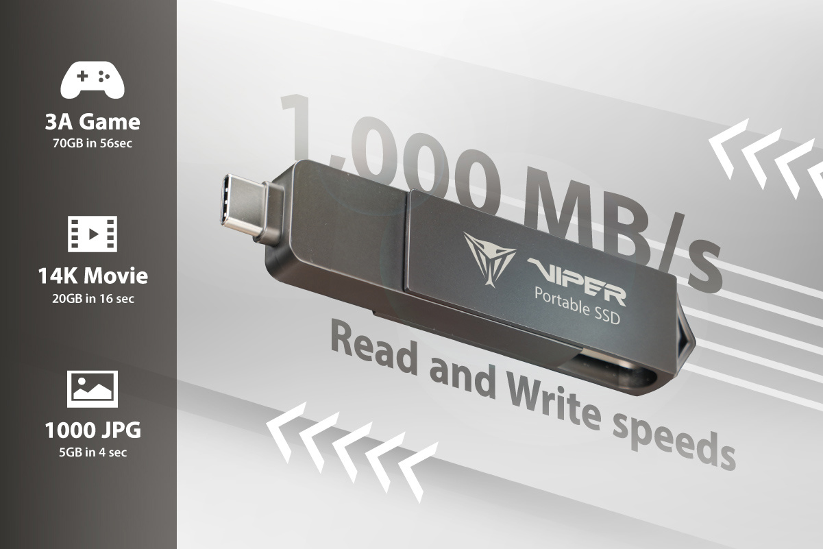 Viper PVP30 采用 USB 3.2 Gen 2(IT之家注:10Gbps)传输协议,顺序读写均最高可达到 1000MB/s,容量可选 512GB / 1TB / 2TB。其盘体三维长宽高为 82.1×17×10 (mm),重 31.5 克。