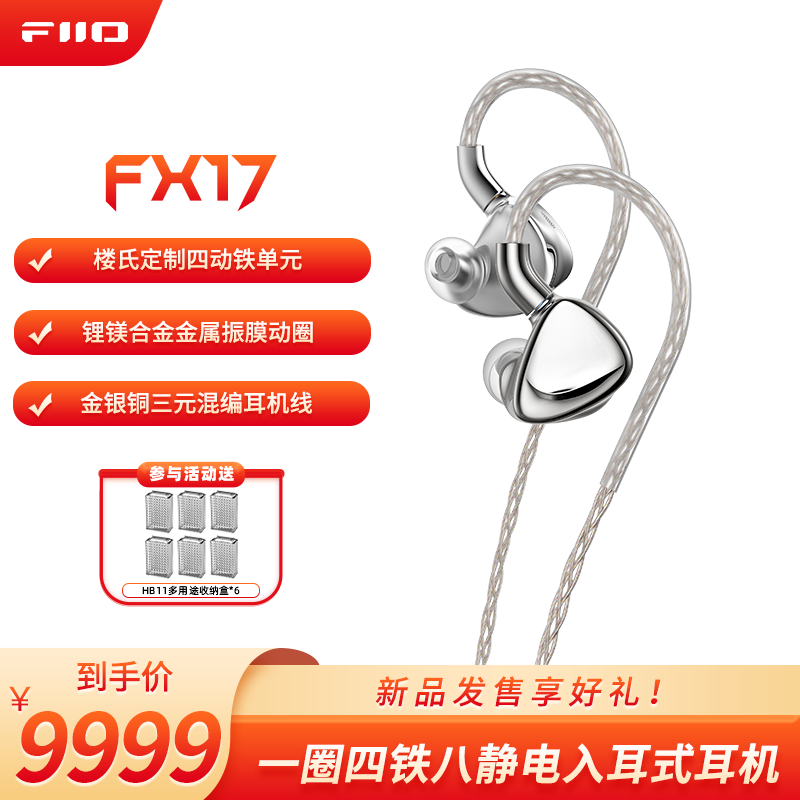 IT之家 3 月 19 日消息,飞傲现已在京东上架一款型号为 FX17 的“一圈四铁八静电混合单元入耳式耳机”,定价为 9989 元。