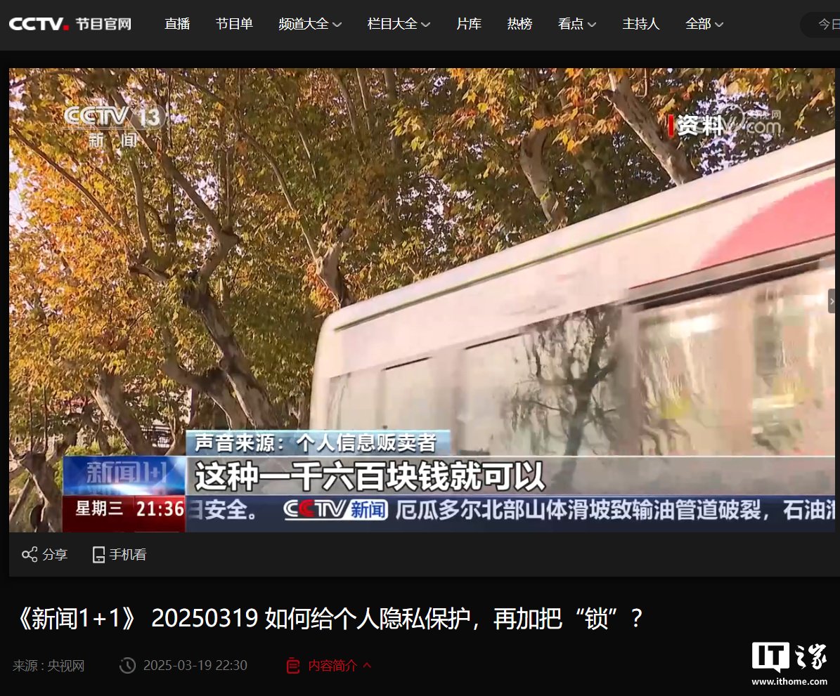 IT之家 3 月 20 日消息,央视《新闻 1+1》栏目昨晚发布《如何给个人隐私保护,再加把“锁”?》,起底新型网络暴力“开盒挂人”。