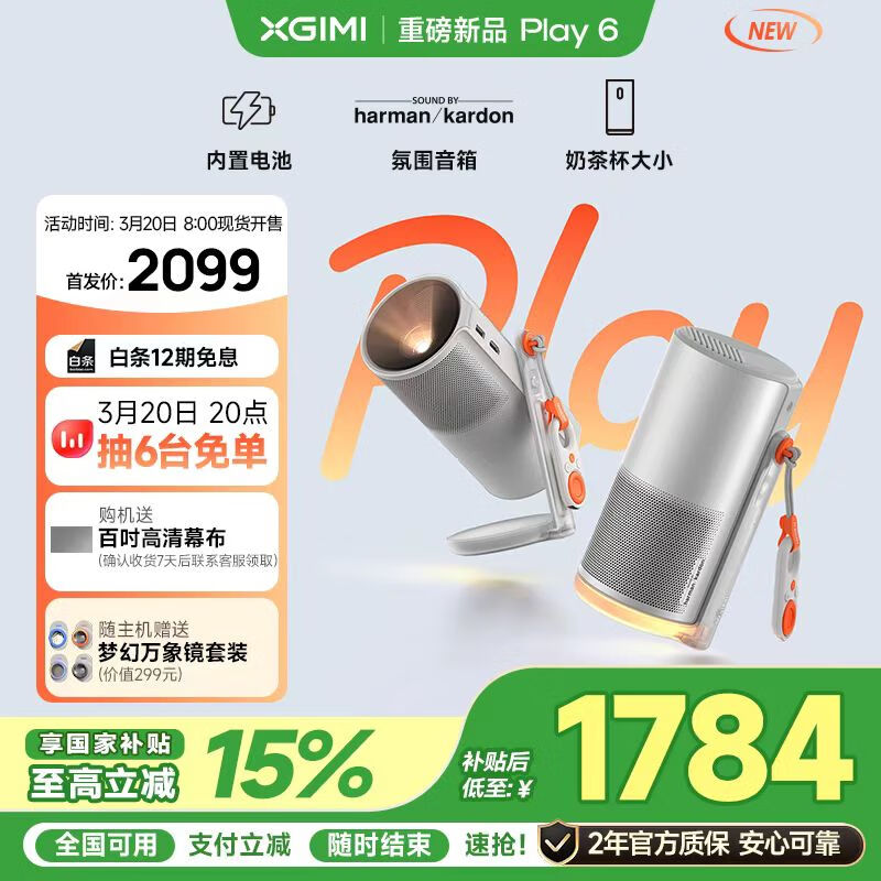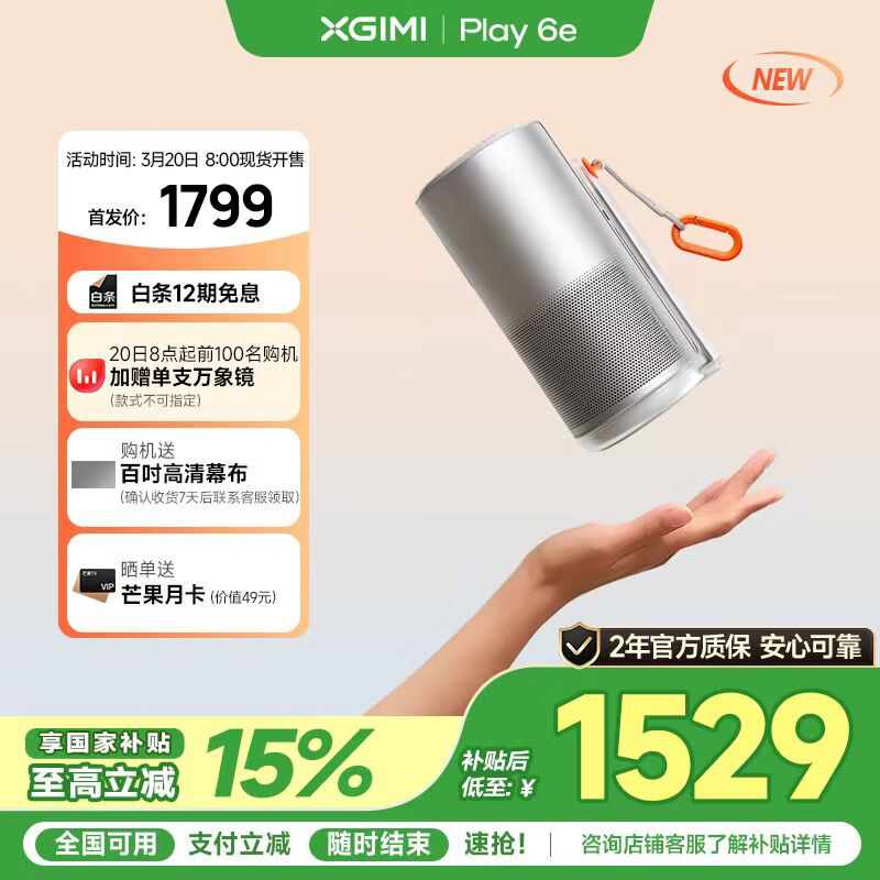 IT之家 3 月 20 日消息,极米 Play 6/6e 投影仪今日发布,两款新品均搭载一体式 360° 云台,零售价分别为 2099 元和 1799 元,国补价分别为 1784 元和 1529 元。