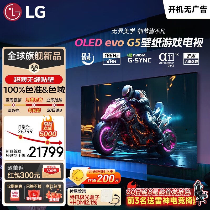 65 英寸(OLED65G5PCA)21999 元,补贴后 21799 元