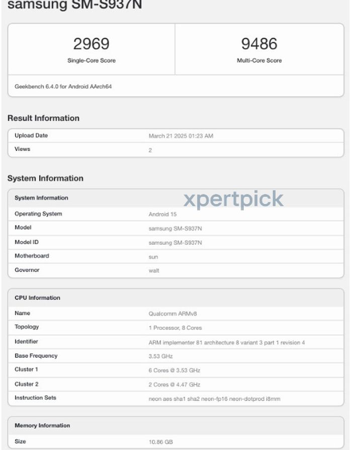 从“SM-S937N”型号判断,应该是韩版 Galaxy S25 Edge 手机,国际版 SM-S937U 上月已经出现在 Geekbench 上。