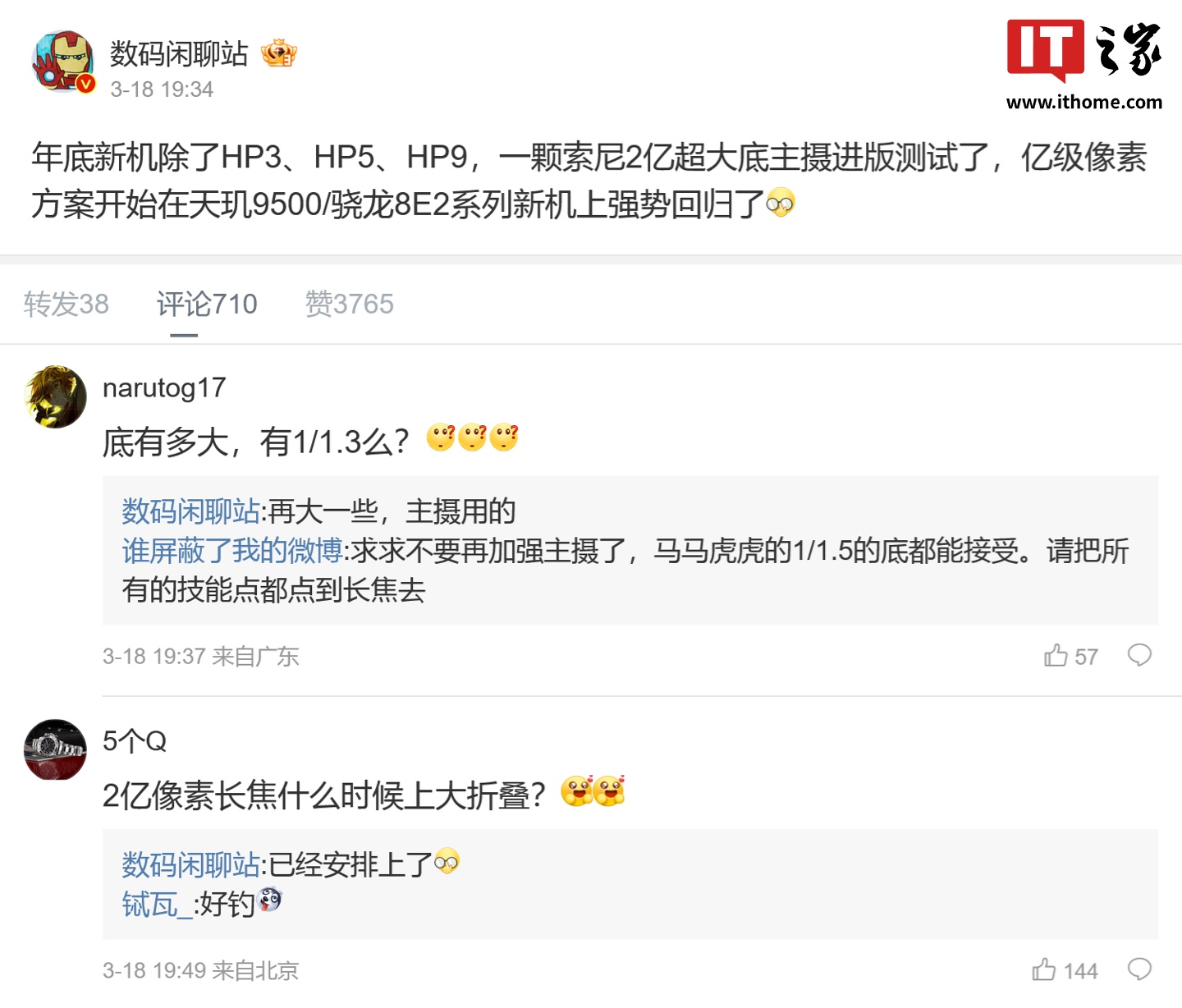 IT之家 3 月 21 日消息,博主 @数码闲聊站 本月 18 日表示,索尼的一颗 200MP 手机图像传感器现已“进版测试”,这一产品将被用于智能手机主摄,光圈尺寸大于 f/1.3。