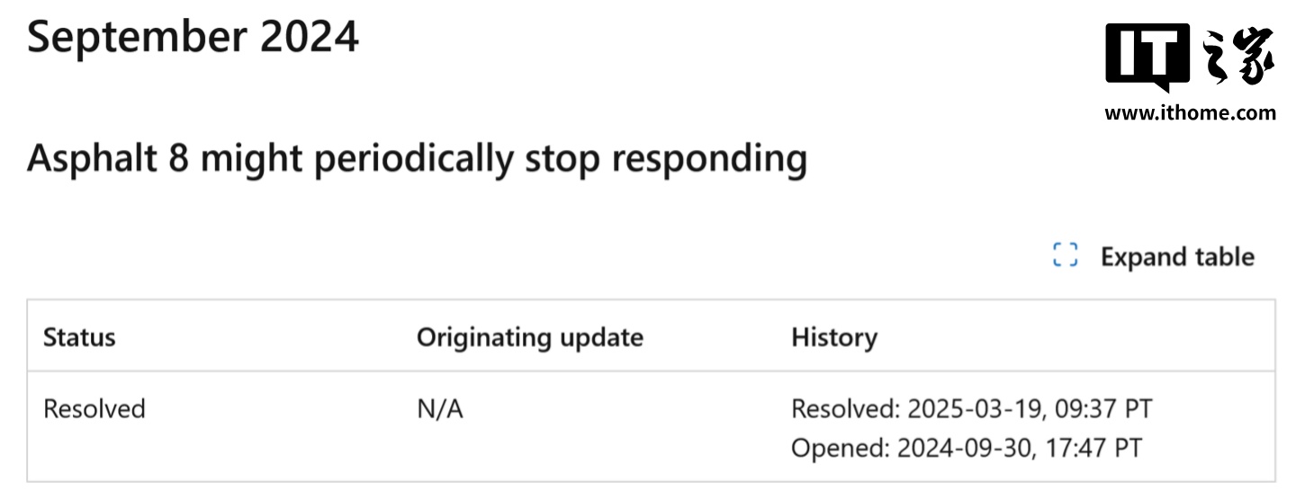 IT之家注:微软于 2024 年 9 月发布公告,确认《狂野飙车 8:极速凌云》游戏和 Windows 11 24H2 之间存在兼容性问题,可能会出现游戏卡死,需重启游戏才能恢复。微软为此添加了兼容性阻止(Safeguard ID 52796746),禁止受影响设备自动升级。