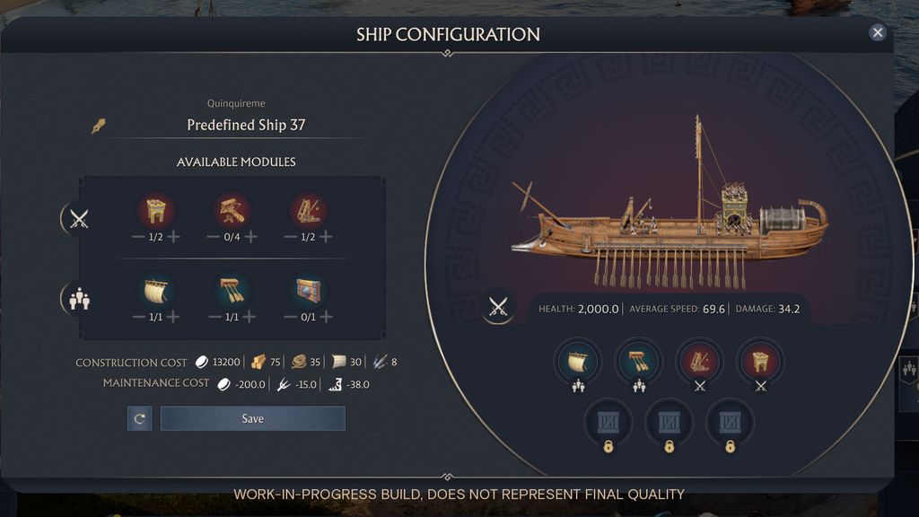 育碧表示,玩家选择的模块,不仅影响船只性能,还会改变建造和维护成本。例如,划桨比帆船更耗费人力,而弓箭塔比投石机需要更多士兵。此外,模块的安装会占用货物空间,但即使完全改装,船只仍会保留一定的载货能力。玩家设计的船只方案可保存并在未来重复使用。