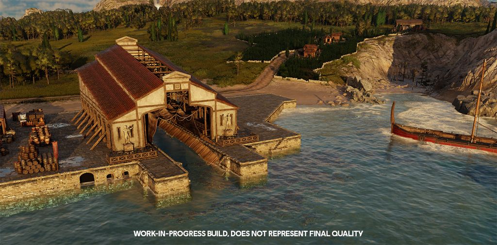 游戏设计师 Markus 表示,模块化船只的想法由来已久,而罗马背景为这一设计提供了完美的平台。玩家可以在造船厂建造 Penteconter(2 个改装槽)、Trireme(3 个改装槽)和 Quinquireme(4 个改装槽)三种尺寸的罗马船只。