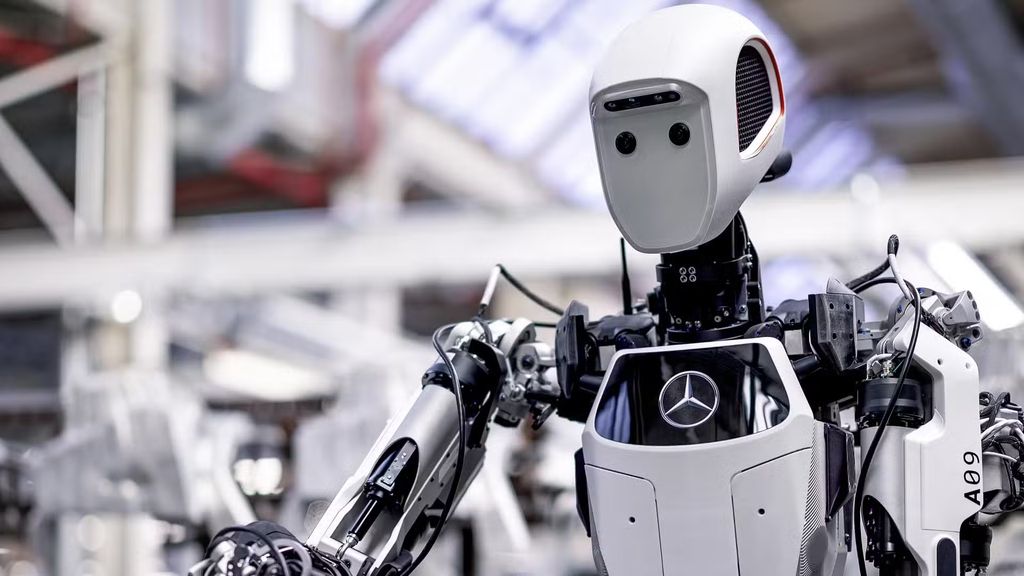 梅赛德斯-奔驰在其位于德国柏林-马里恩菲尔德的创新中心安装了由美国 Apptronik 公司开发的 AI 人形机器人。