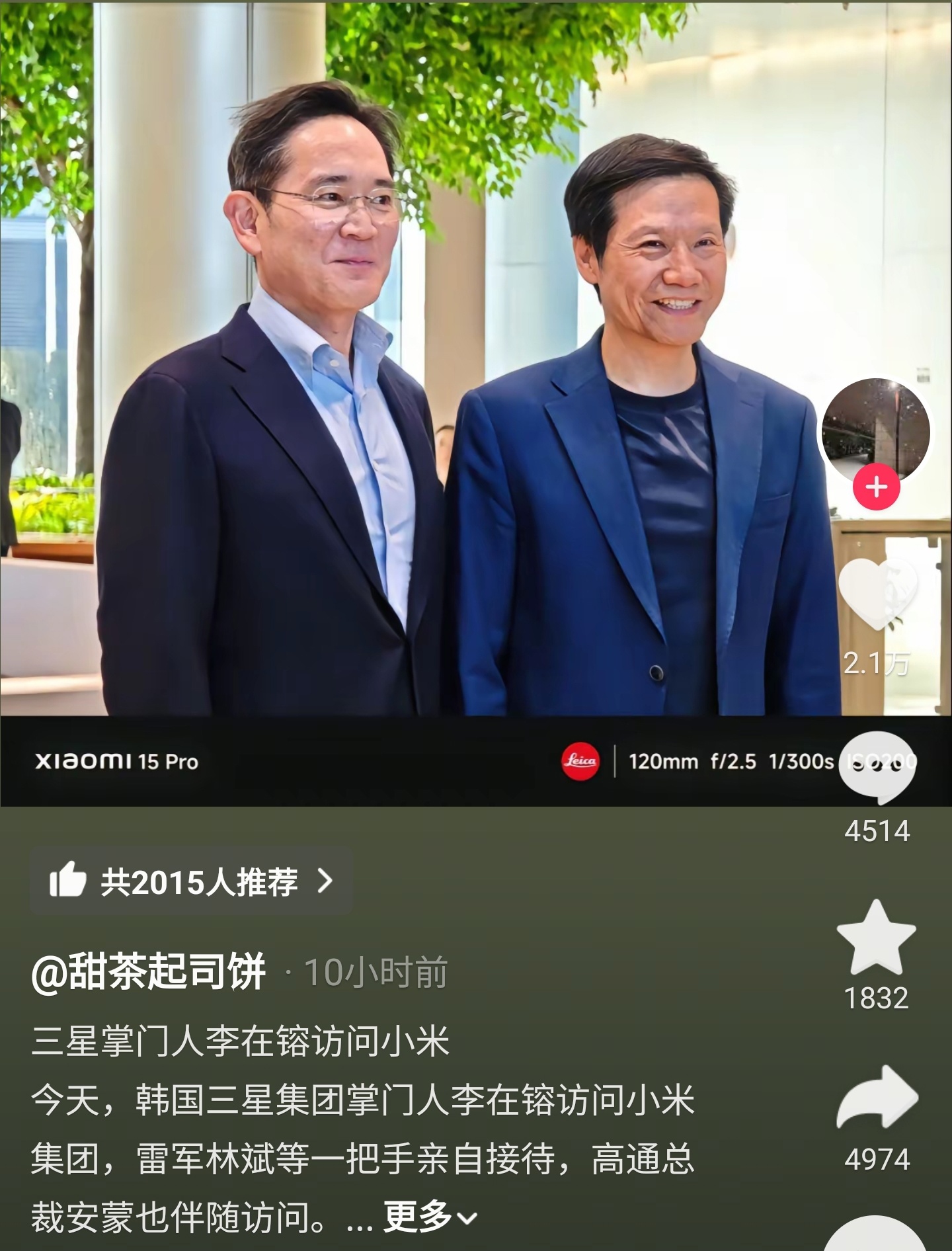IT之家 3 月 23 日消息,昨日有网友爆料三星电子会长李在镕、高通公司总裁安蒙访问小米汽车工厂,由雷军、林斌等高层接见,并放出人员合照。