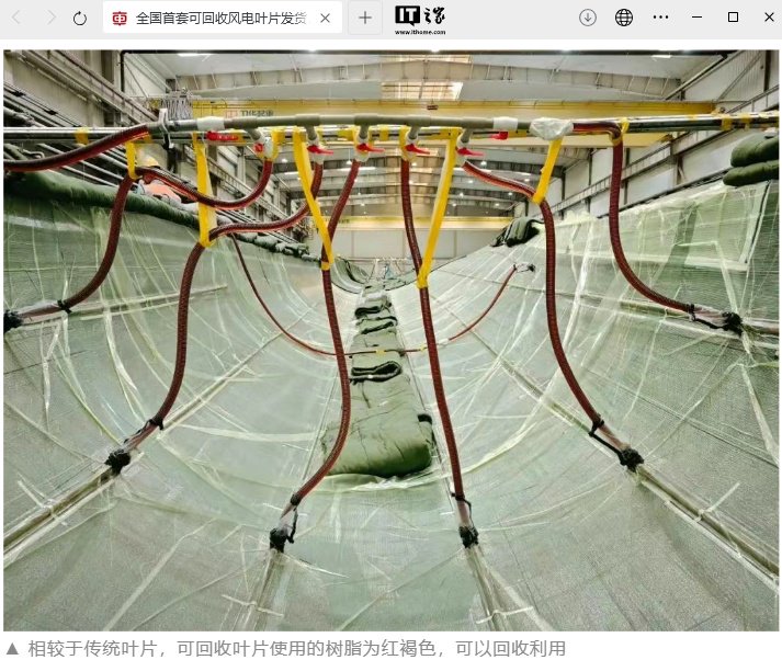IT之家 3 月 23 日消息,据中国中车消息,近日,中国中车集团旗下时代新材自主研发的国内首套可回收热固性树脂叶片 TMT82 在时代新材公司风电叶片射阳工厂发货。