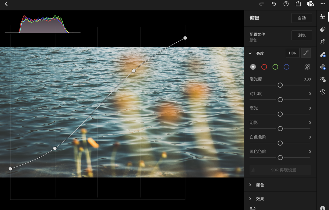 为实现这种效果,我们可以在后期的过程中好好利用“曲线”这个工具(Lightroom、Photoshop 中均有这个工具)。