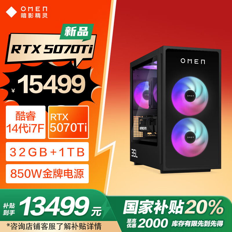 IT之家 3 月 25 日消息,惠普现已为其暗影精灵 11 竞技版新增 i7-14700F + RTX 5070 Ti 版本,配备 32GB 内存、1TB 固态硬盘,定价为 15499 元,国补后到手价 13499 元。