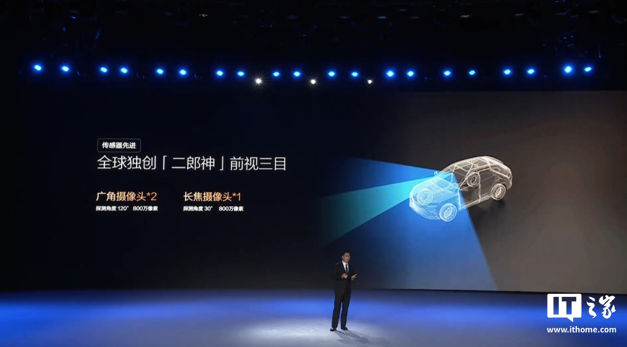 据介绍,“天神之眼 C”搭载传感器先进的 「二郎神」前视三目,物体探测精度 1cm,高程感知时延低至 30ms,号称“路面不平提前预瞄,减速通行安全伴行”。